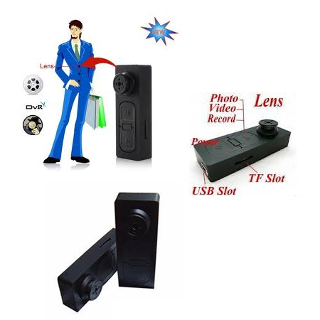 | Cool looking Spy bluetooth Clip Camera Mini DVR with secretly built in camera for video and image capture. |